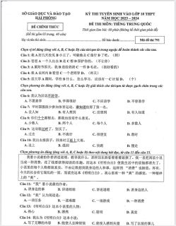 “Hình ảnh trích từ đề thi chuyên tiếng Trung Hải Phòng năm học 2023-2024”